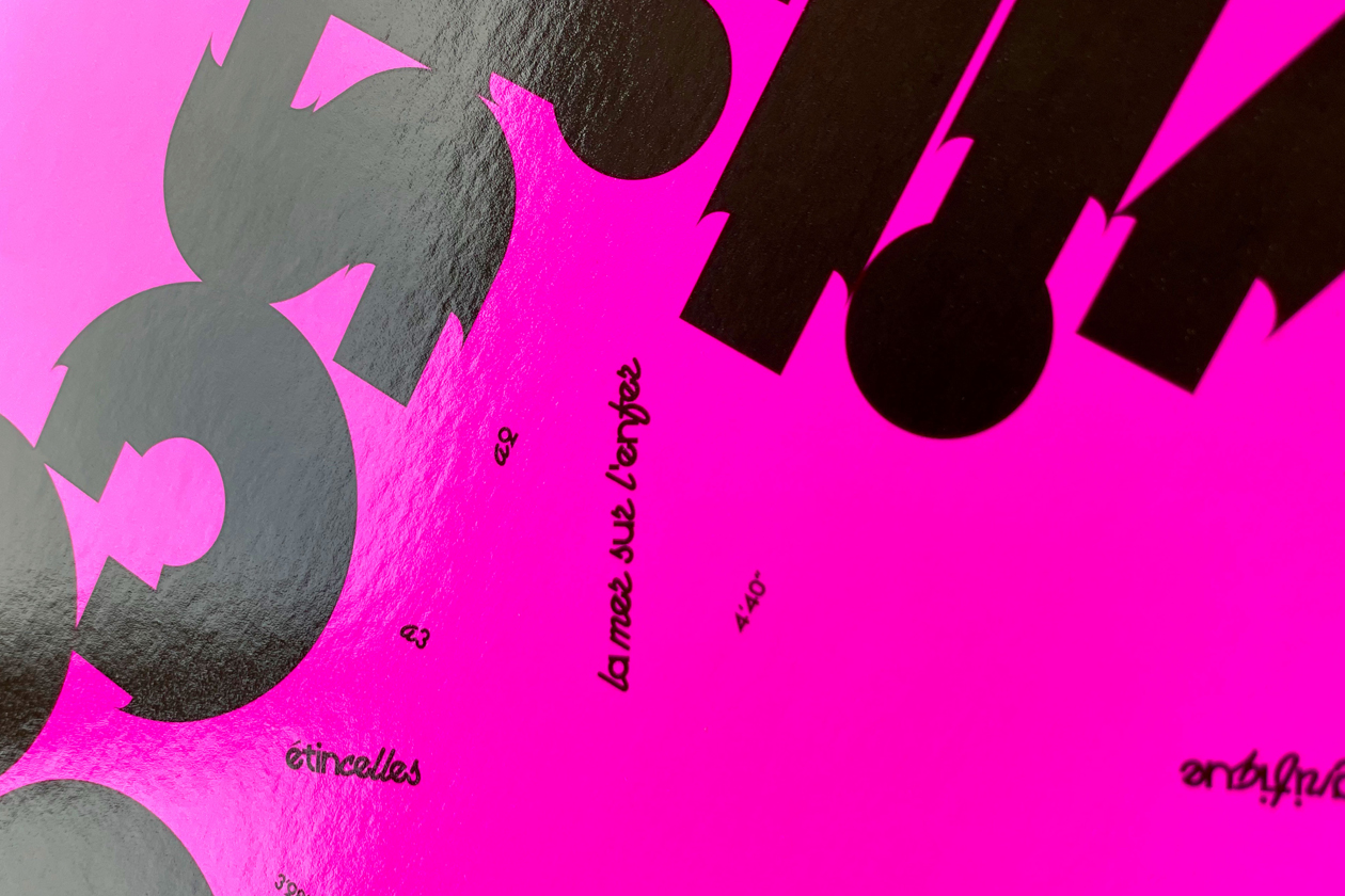 Music packaging for the Étincelles EP by Black Devil Disco Club released by Lo Recordings. The outer sleeve is silkscreen printed with a spot varnish with a laser cut 'sparks' motif. Designed in partnership with ANTI, Oslo