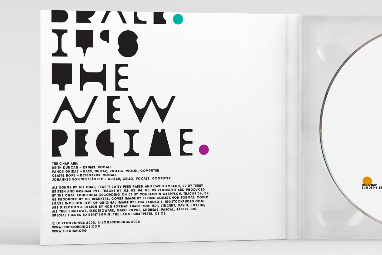 Music packaging and promo campaign for The Chap’s third studio album on Lo Recordings. The three balloon dog mages are by Non-Format with the help of Eskimo Square. We also created a custom typeface especially for the project.