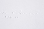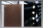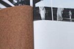 Several types of paper have been used to create this lookbook for Paris-based fashion designer Rick Owens, including a wax-coated kraft. The pages are also trimmed to varying heights and widths. Some spreads are also silkscreen overprinted using a heavy hit of white ink. The covers are white blotter board with a blind debossed logotype.